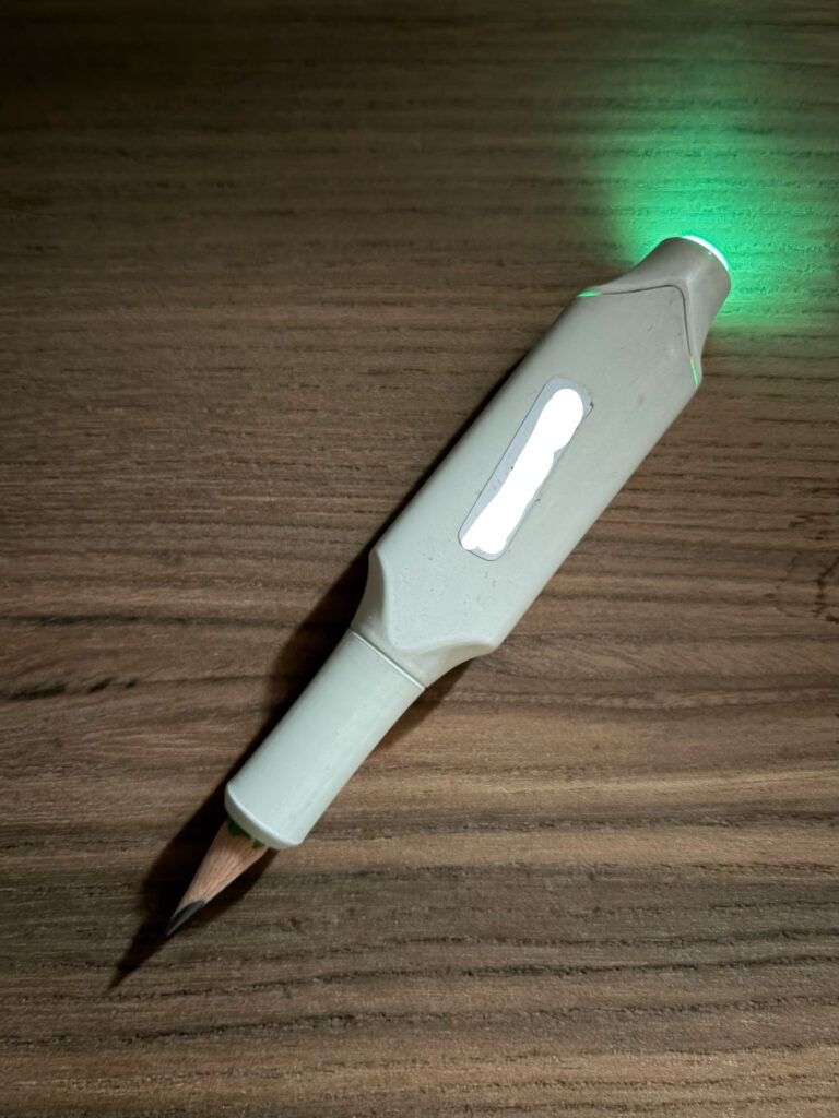 ペンを握り、勉強した時間に応じて、持ち手のLEDライトの色が変化します。