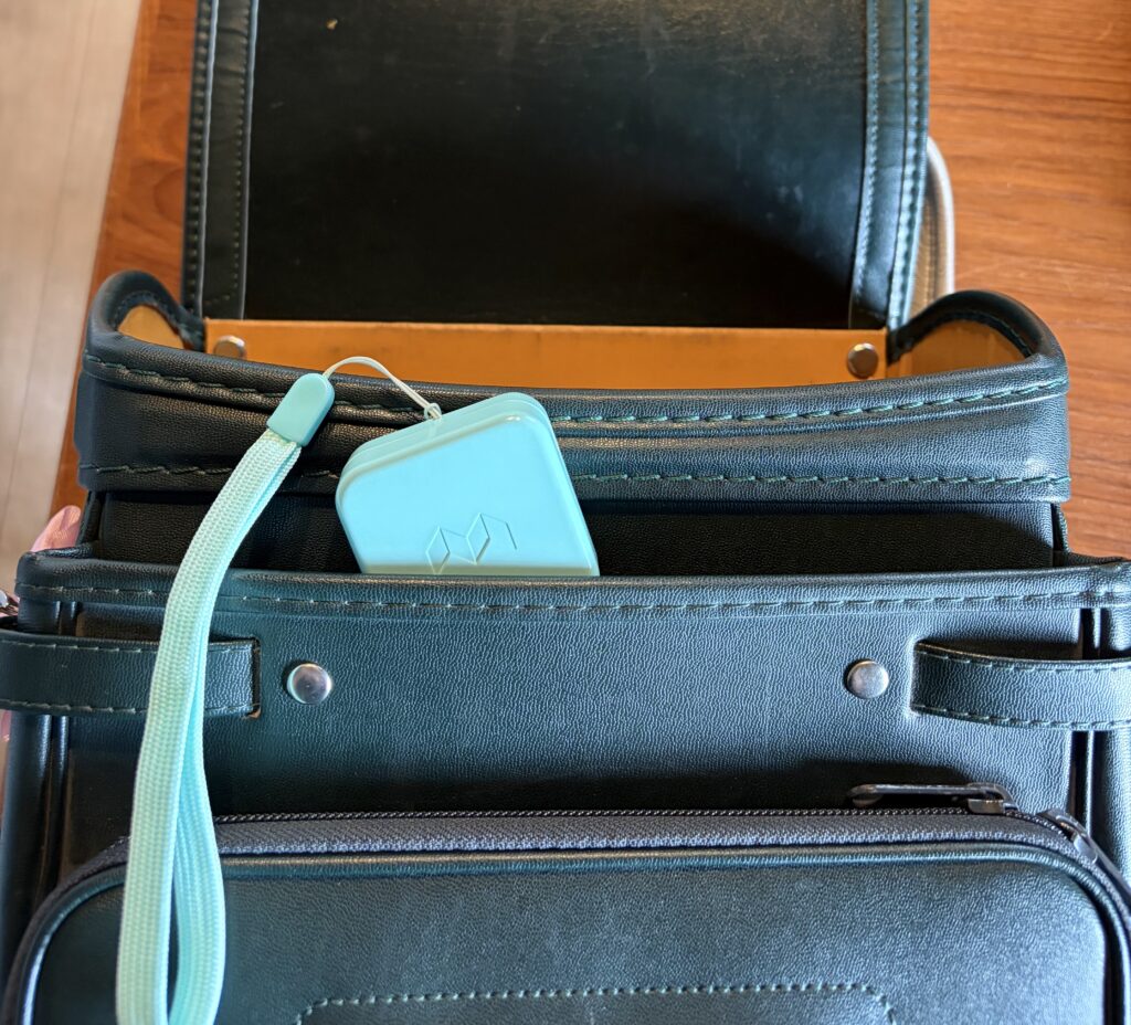 - 良かった点: 学校や自宅への到着を自動通知してくれる。正方形でコンパクトなので、ランドセルの内ポケットにスッキリ収まる。
