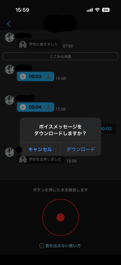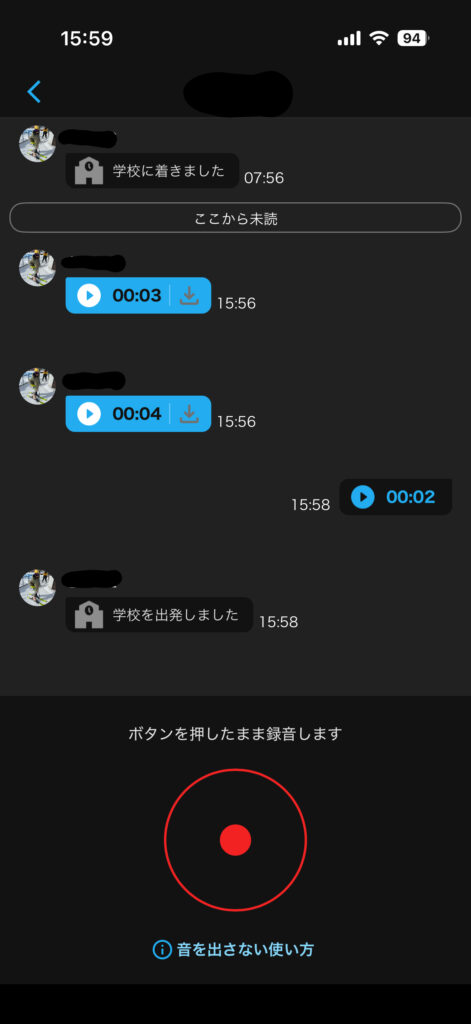 第2世代は親が一方的に見守るだけでしたが、第4世代は「声でのメッセージのやり取り」が可能です。子供がボタンを押しながら話すだけで、親のスマホに声でメッセージが届きます。メッセージもはっきりと聞き取りやすいです。(あんまり期待していなかったのでびっくり。すみません、、、)