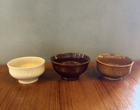 先生から説明とアドバイスをいただき、作るものを相談。 初心者には平皿よりも「湯呑み」や「お茶碗」が作りやすいとのことで、今回は家族3人でお鍋を囲む時に使えるお揃いの器を作ることに決めました。