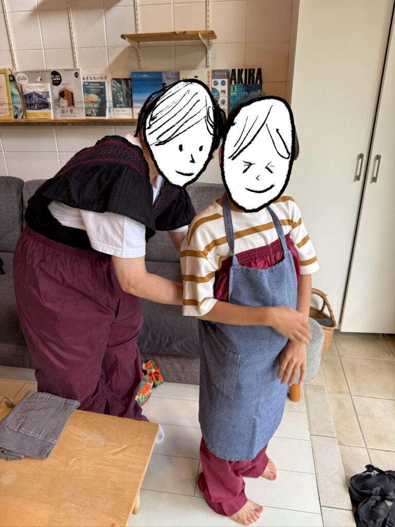 汚れないよう泥よけのパンツとエプロン、履き物を貸していただき、いよいよ制作スタート。 ※念のため、汚れても良い服装で行くのがベストです!